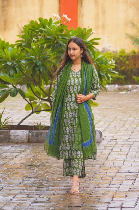 Green Paisley Handblock Kurta Set