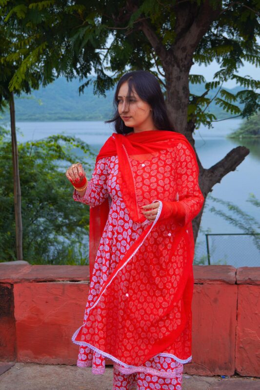 Ruby Petal Block Print Anarkali Set