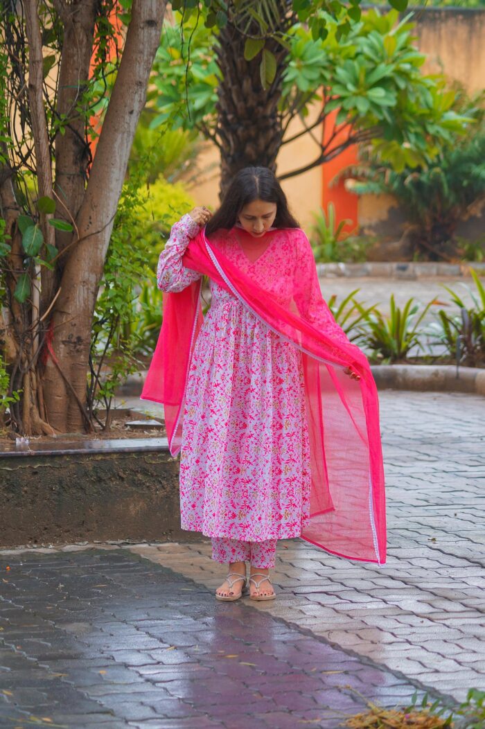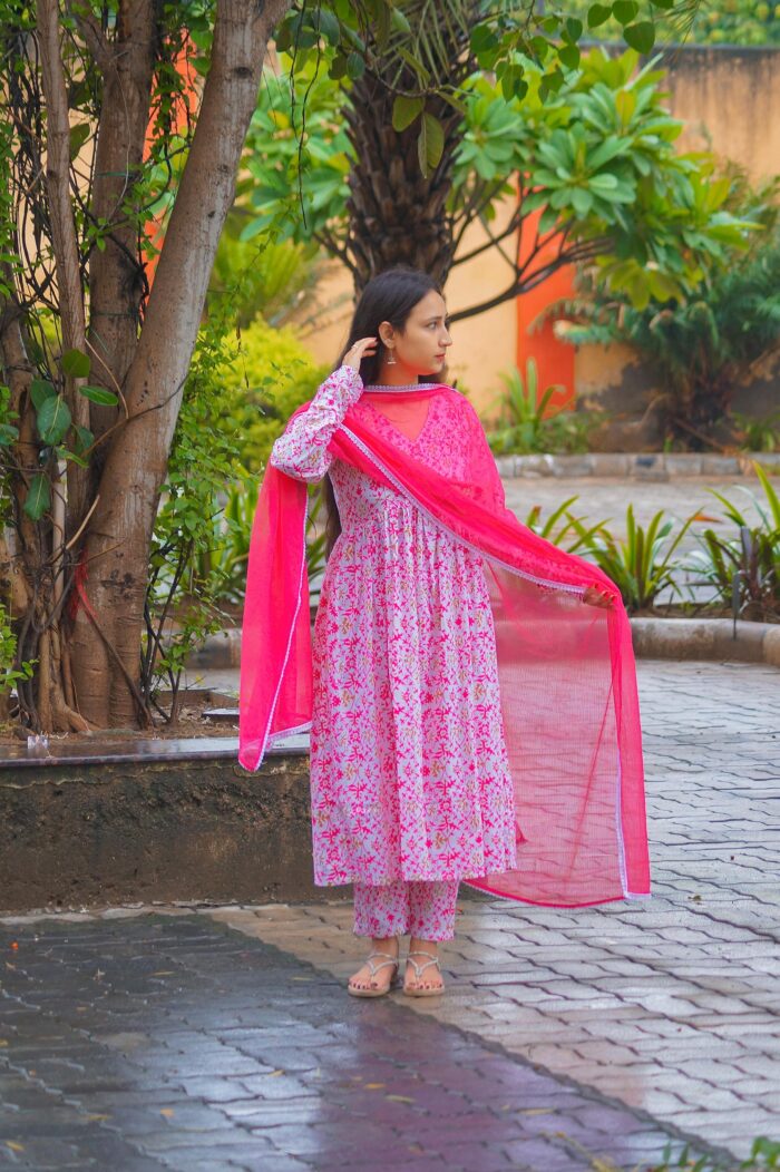 Perfect for the woman who loves effortless style with a touch of tradition. Add the Fuchsia Bloom Floral Kurta Set to your collection and embrace elegance every season.