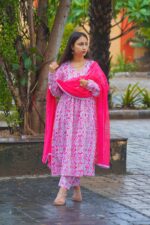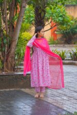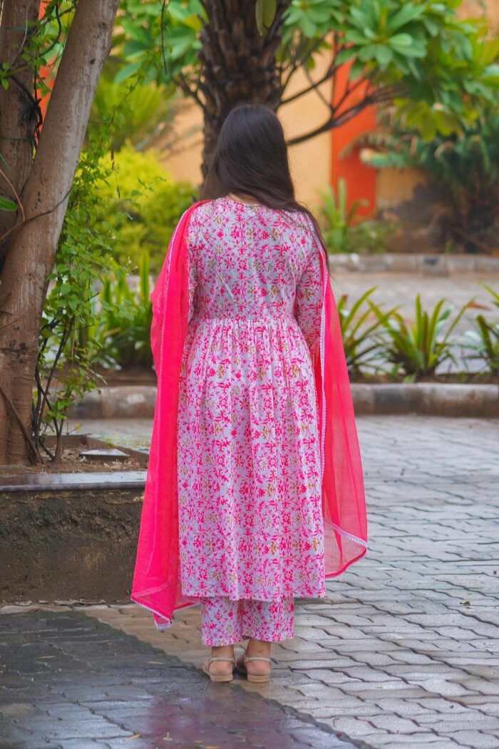 Revel in timeless elegance with our Fuchsia Bloom Floral Anarkali Set, designed to make every day feel radiant.