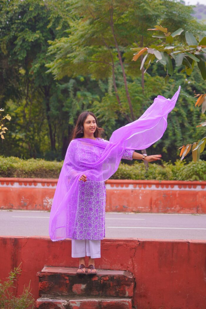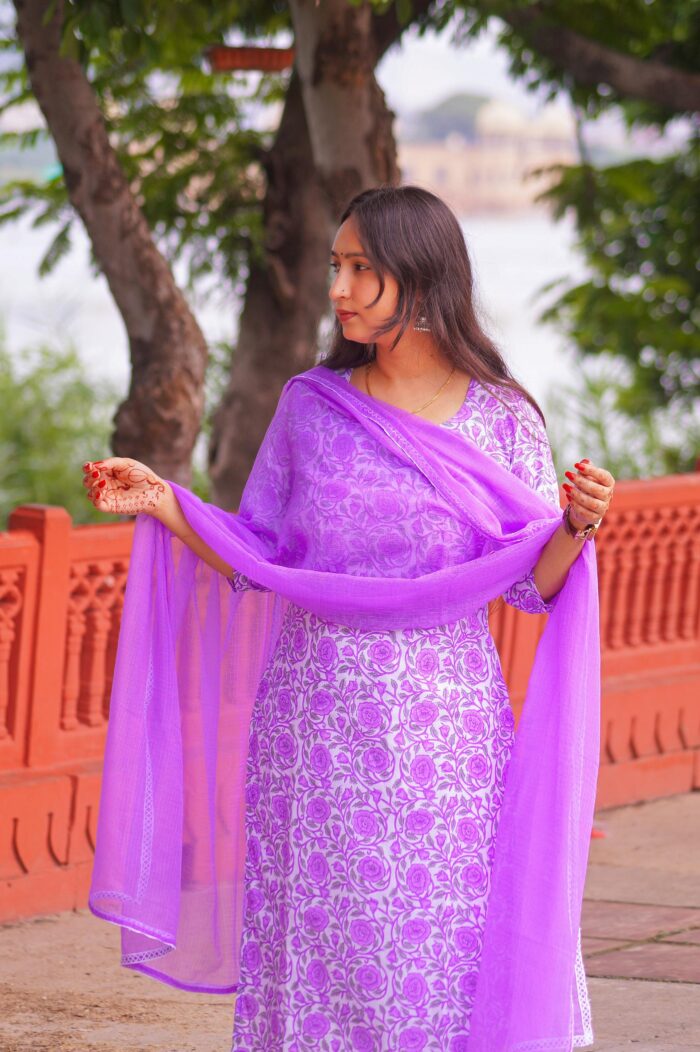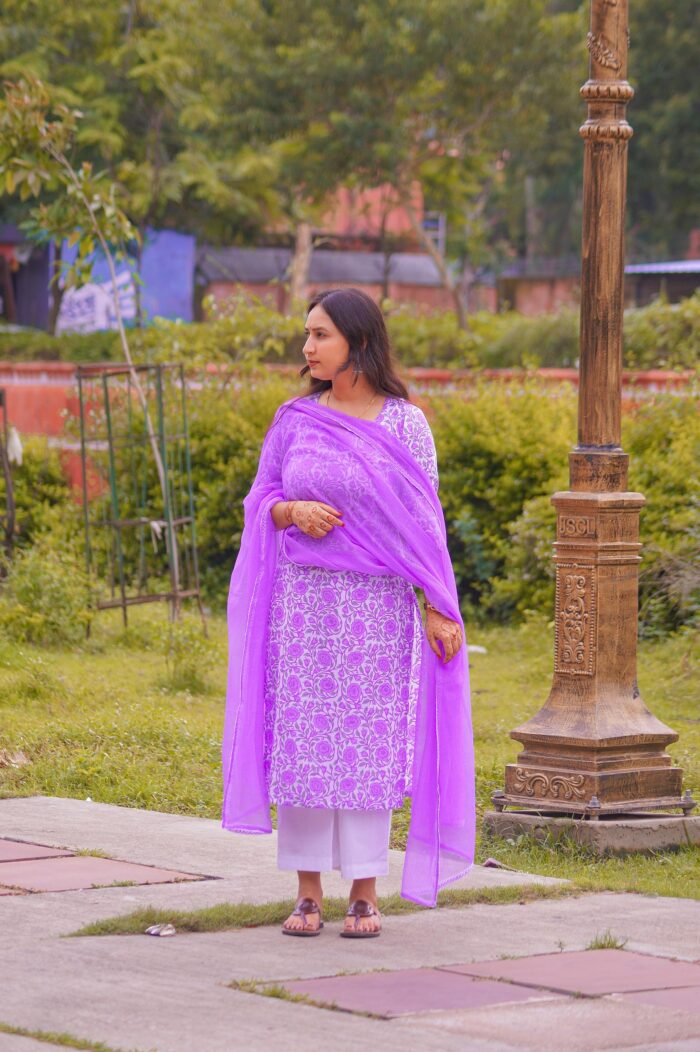 Bring home the Lavender Blossom Floral Kurta Set for a look that blends tradition, comfort, and contemporary charm.